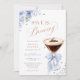 An elegant bridal shower invitation inspired by a romantic coffee theme with a delicate blue bow detail.