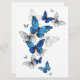 Flying Blue Butterflies Morpho und weiße Schmetterlinge auf einem hellen abstrakten Hintergrund. Morpho. Design mit blauen Schmetterlingen Morpho.