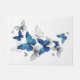Flying Blue Butterflies Morpho und weiße Schmetterlinge auf einem hellen abstrakten Hintergrund. Morpho. Design mit blauen Schmetterlingen Morpho.