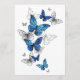 Flying Blue Butterflies Morpho und weiße Schmetterlinge auf einem hellen abstrakten Hintergrund. Morpho. Design mit blauen Schmetterlingen Morpho.