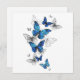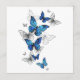 Flying Blue Butterflies Morpho und weiße Schmetterlinge auf einem hellen abstrakten Hintergrund. Morpho. Design mit blauen Schmetterlingen Morpho.
