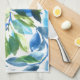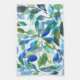 Blues und Grüntöne aus Blattwerk, die auf einer Seite den gesamten Handtuchbereich abdecken.