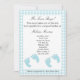 Diese niedliche Einladung ist ideal, um die Dame mit zwei Jungen mit Dusche zu bestreuen. Es ist der Hintergrund blau-weiße Karo. Es zeigt Cartoon Baby Fußspuren, beide Set blau. Sie können den gesamten Text anpassen.