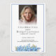 A beautiful and elegant two sided funeral program adorned with pretty blue forget-me-nots flowers.