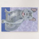 Dieses Puzzle ist das perfekte Geschenk für einen Hundefreund, es zeigt mein Portrait eines niedlichen Blue French Bull Dog vor einem blauen gemusterten Hintergrund.