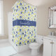 Blue French Country Lemon Pattern Monogram Name Duschvorhang