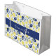 Blue French Country Lemon Pattern Monogram Name Große Geschenktüte
