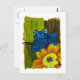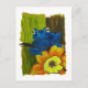 Blue frog relaxing on flower and tree branch postkarte