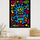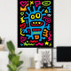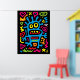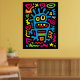 Diese funky blaue Alien springt mit Neonfarben und sonderbarer Energie aus. Mit großen Augen und einem spielerischen Grinsen ist es ein Pop-Kunstdesign, das Ihre Wanddekoration elektrifizieren und funky-vibes in jeden Raum bringen soll.