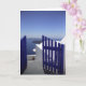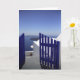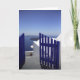 Foto eines blauen Tors mit Blick aufs Meer, Santorini, Griechenland