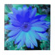 hübsches Blaues Hinweisen auf die lila Gerber Daisy und aquamarin grüne Blattfarbe Pop auf diesem Tile geeignet zum Framing oder fügen Sie zu einer Geschenkboxen.