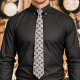 auf schwarzem hemd eine attraktion. die druckqualität ist hervorragend, jedoch nicht zentriert wie in der vorlage, gibt der krawatte aber einen noch indiviuelleren touch