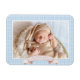 Dieser süße Baby-Foto-Magnet zeichnet sich durch ein süß-blaues Gingham-Muster aus, das das Foto Ihres Babys einbindet.