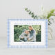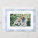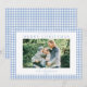 Erstellen Sie Ihre eigenen Weihnachtskarten mit einem Ihrer Lieblingsfamilienfotos zusammen mit dem personalisiert minimalistischen Typografiennamen und dem Jahr auf einem niedlichen blauen Gingham karierten Muster Hintergrund.