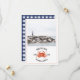 Eine rustikale nautische Hochzeit speichern das Datum mit einer Abbildung einer roten Krabbe mit individuellem Foto auf der Vorderseite. Zurück ist blau-weiß Gingham.