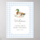 Herzlich willkommen bei Freunden und der Familie in Ihrer Babydusche mit diesem blauen Entenschild.