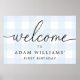 Blue Gingham First Birthday Welcome Sign Poster