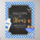 Blue Gingham GRILLEN Baby Dusche Willkommen Poster