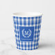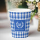 Blue Gingham Monogram Wappen Custom Pappbecher