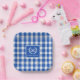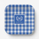 Custom Monogram Paper Tellers Blue Gingham Pattern Design - 6 Farben. Feiern Sie Liebe mit zeitlosem Charme! Diese personalisierten Gingham Monogramm Papier-Teller sind ideal für Jubiläen, Hochzeiten oder romantische Meilensteine. Erhältlich in sechs klassischen Farben. Passen Sie mit Initialen und Datum an, um einen herzlichen Sake zu schaffen, den sie lieben.
