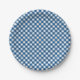Teller aus blauem Gingham-Muster. Sie machen großartige Teller für ein Picknick oder Grillen. Klicken Sie zum Hinzufügen von Text auf Anpassen. *Bitte beachten Sie, dass das Zazzle-Wasserzeichen, das in der Zoomvorschau angezeigt wird, NICHT auf dem gedruckten Endprodukt erscheint. © Rosewood and Citrus