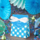Cute blue gingham pattern on favor boxes with optional "Thank you" text.