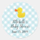 Blue Gingham Rubber Duckie Baby Duckie Runder Aufkleber