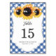 Blue Gingham Sunflower Wedding Tischnummer Card