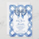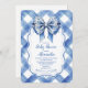 Laden Sie Freunde und Familie ein, um die Ankunft eines kleinen Gentleman mit dieser Niedlichen Blue Bow Ribbon Baby Boy Shower Einladung zu feiern! Die Touch ist klassisch und charmant gestaltet und bietet eine sanfte blaue Farbpalette mit einem zauberhaften Bugband-Akzent. Sie verleiht dem Baby-Duschbad einen süßen und raffinierten Look. Diese Einladung, die auf hochwertigen Cardstock gedruckt wurde, enthält individuell anpassbare Details, die es Ihnen erleichtern, sich mit Datum, Uhrzeit und Lage der Dusche zu personalisieren. Das elegante Design und die zeitlose Optik des Hauses sorgen für eine niedliche und elegante Babydusche. Die Sets sind perfekt für einen angenehmen Aufenthalt. Das Blue Bow Ribbon Invitation eignet sich ideal für eine traditionelle oder moderne Dusche und wird die Gäste begeistern und willkommen heißen, wenn sie sich auf den Weg zum Jungen vorbereiten!