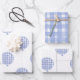 Blue Gingham Watercolor Ballon Wrapping Paper Geschenkpapier Set