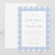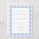 This charming wedding invitation features a soft blue gingham border that brings a fresh and cheerful feel to the design. The light background and delicate typography create a balanced, romantic look.