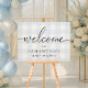 This welcome sign features a timeless gingham design with a modern calligraphy welcome heading. The sign can be customised to suit any event.