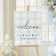 This welcome sign features a timeless gingham design with a modern calligraphy welcome heading. The sign can be customised to suit any event.