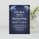 Blue Glitzer Two Graduates Double Graduation Party Einladung