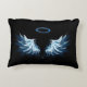 Blue Glows Angel Wings auf schwarzem Hintergrund Dekokissen