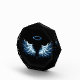 Blue Glows Angel Wings auf schwarzem Hintergrund Fotoblock