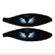 Helle, künstlerische, blaue Engelsflügel auf schwarzem Hintergrund. Engel Flügel.