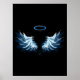 Blue Glows Angel Wings auf schwarzem Hintergrund Poster