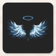 Blue Glows Angel Wings auf schwarzem Hintergrund Rechteckiger Pappuntersetzer