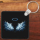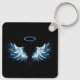 Blue Glows Angel Wings auf schwarzem Hintergrund Schlüsselanhänger