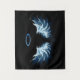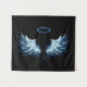 Blue Glows Angel Wings auf schwarzem Hintergrund Wandteppich