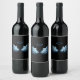 Blue Glows Angel Wings auf schwarzem Hintergrund Weinetikett