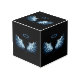 Blue Glows Angel Wings auf schwarzem Hintergrund Würfel