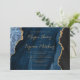 Diese elegante, moderne Hochzeitseinladung besticht durch ein marineblau-blaues Aquarellhintergrund mit vergoldetem Imitat-Glitzer. Der anpassbare Text kombiniert goldfarbene moderne Skripte, Copperplate und kursiv Schriftart. Auf der Rückseite ist ein passendes marineblau-goldfarbenes Design zu sehen.