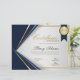 Das berufliche Zertifikat für herausragendes Design zeichnet sich durch Blau-, Gold- und Graufarben mit detaillierten Linien und einer goldenen Grenze aus. Umfasst den Goldmedaillenpreis und die Sterne.