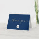 Personalize this simple and easy to use gold hue, thank you folded card template with your company's logo, message, name, and social media handles. Let your clients, customers, patrons know you are grateful for their support during these uncertain times. Featuring a printed modern customizable text "thank you" script with long-tailed embellishments on Blue (tip: use the white version of your logo as a PNG on a transparent background).