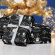Blue Gold Denim Black Christmas Santa Pattern Geschenkpapier