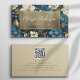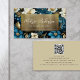 Blue Gold Floral Foil QR Code Luxe Visitenkarte