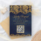 Blue Gold Foil Lace QR Code UAWG Wedding Website Begleitkarte
