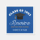 Eine klassische Wiedersehen-Party-Papierserviette in klassischem Königsblau und Gold für eine High School, Uni oder Universität. Passen Sie mit Ihrem Schulnamen und schließ-Klasse unter der eleganten Kalligrafie für eine großartige personalisierte Alumni Feier Dekoration an.